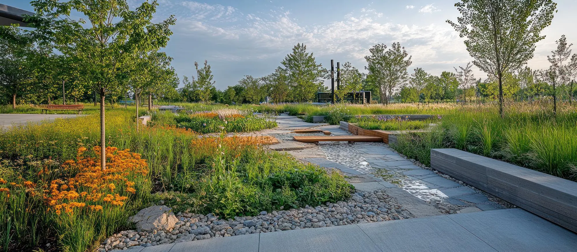 Proyectos paisajísticos que se integran en comunidades, incluyendo jardinería, sistemas de riego, drenaje e iluminación.